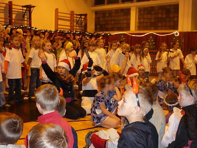Celý deň sme sa pripravovali na príchod Mikuláša. Najprv nás prišiel navštíviť do tried. Aby mu nebolo smutno, tak ho sprevádzala aj známa dvojica - anjel a čert. Ten čert, riadne deti nastrašil, ale nakoniec všetko dobre dopadlo. Všetky deti dostali sladký darček a už sa tešili na popoludnie. O 16. hodine sa začal v telocvični školy slávnostný program, v ktorom sa predviedli aj žiaci našej školy , ktorí navštevujú SZUŠ Boby Brelly. Predviedli nám pestrý program, v ktorom sa striedali rôzne druhy tancov, spevu a hovoreného slova. Na záver k nám prišla aj známa trojica- Mikuláš, anjel a čert. Z ich príchodu sa potešili všetky deti! |