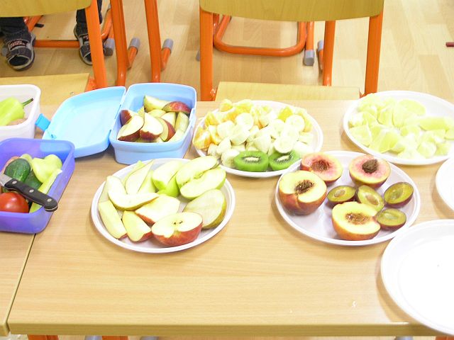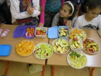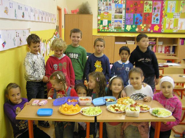 voňavé vyučovanie. V jeden novembrový deň si spestrili obyčajný vyučovací deň takýmito dobrotami. Tieto dobroty nielen ochutnali, ale sa aj presvedčili, že ovocie a zelenina sú nielen chutné, ale aj zdravé. Rodičia, spolu s pani učiteľkou, pripravili deťom takéto zdravé dobroty. |